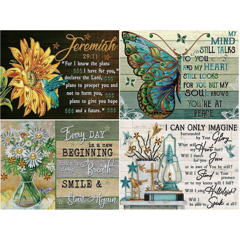 (4-Pack)English-Partial Special Shaped Diamond Painting 40*30CM